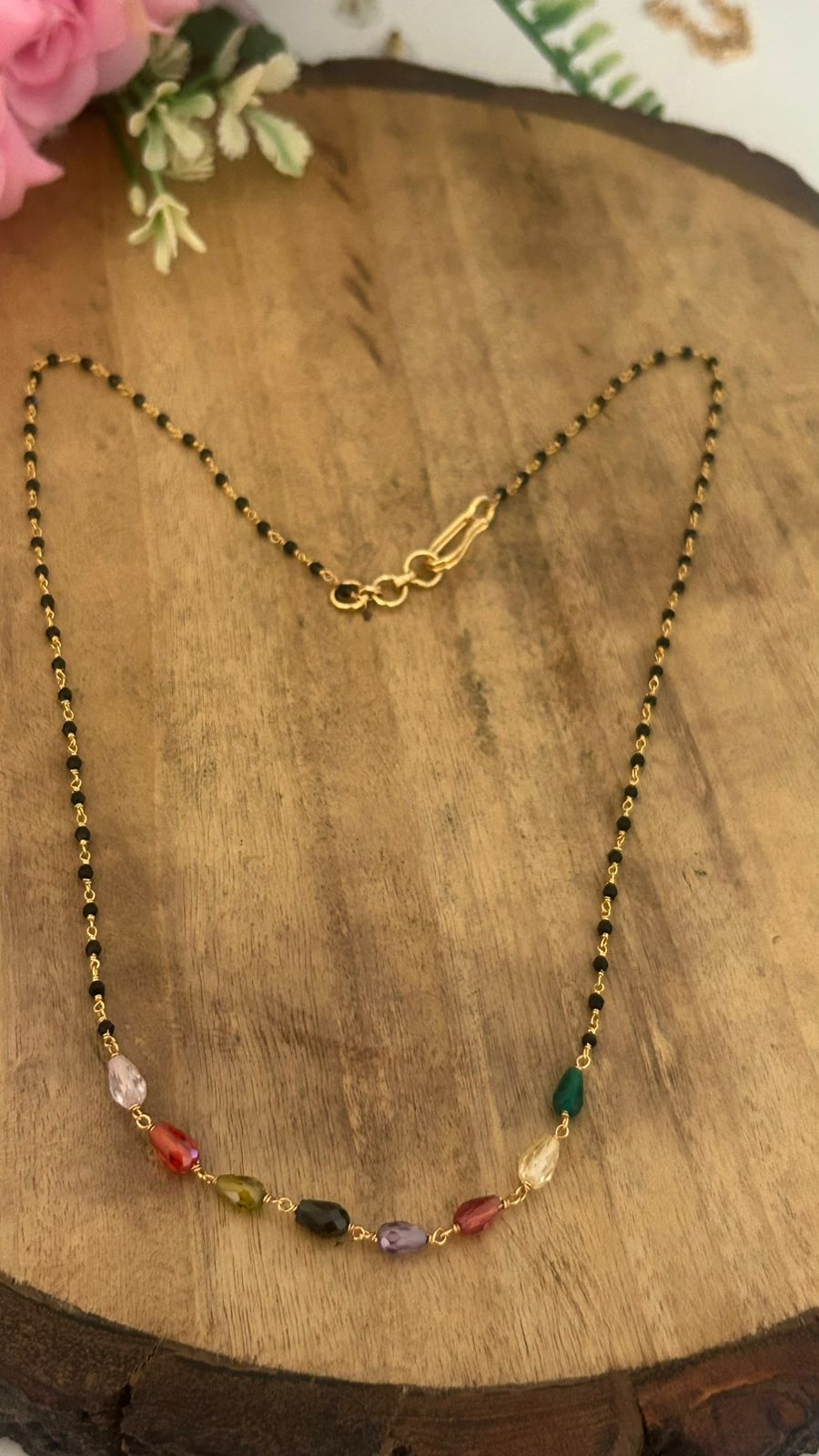 Elegant Multi-Color Stone Black Beads Mangalsutra | Daily Wear Short Mangalsutra Design